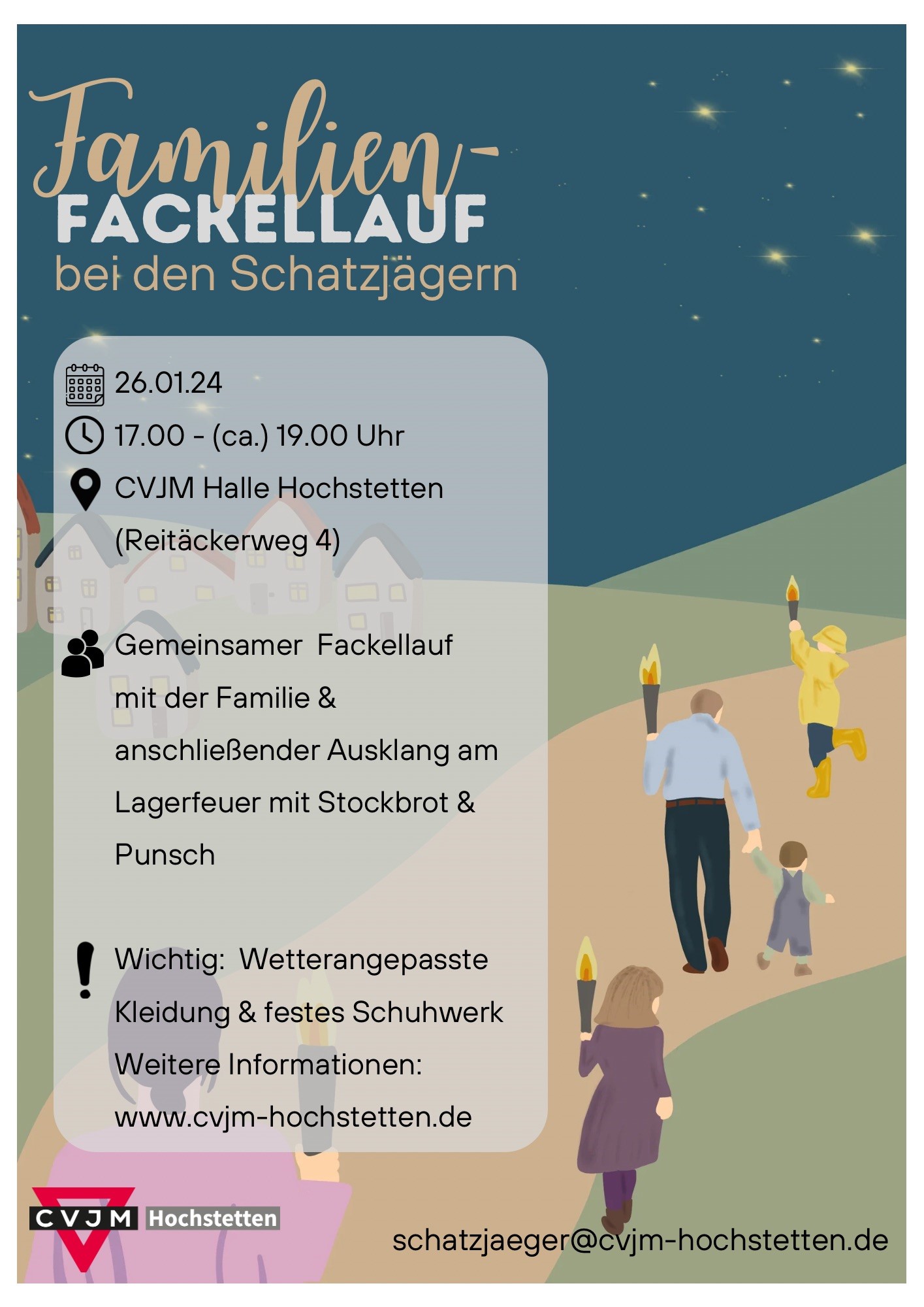 Herzliche Einladung zum ersten Familienfackellauf des CVJM Hochstetten.